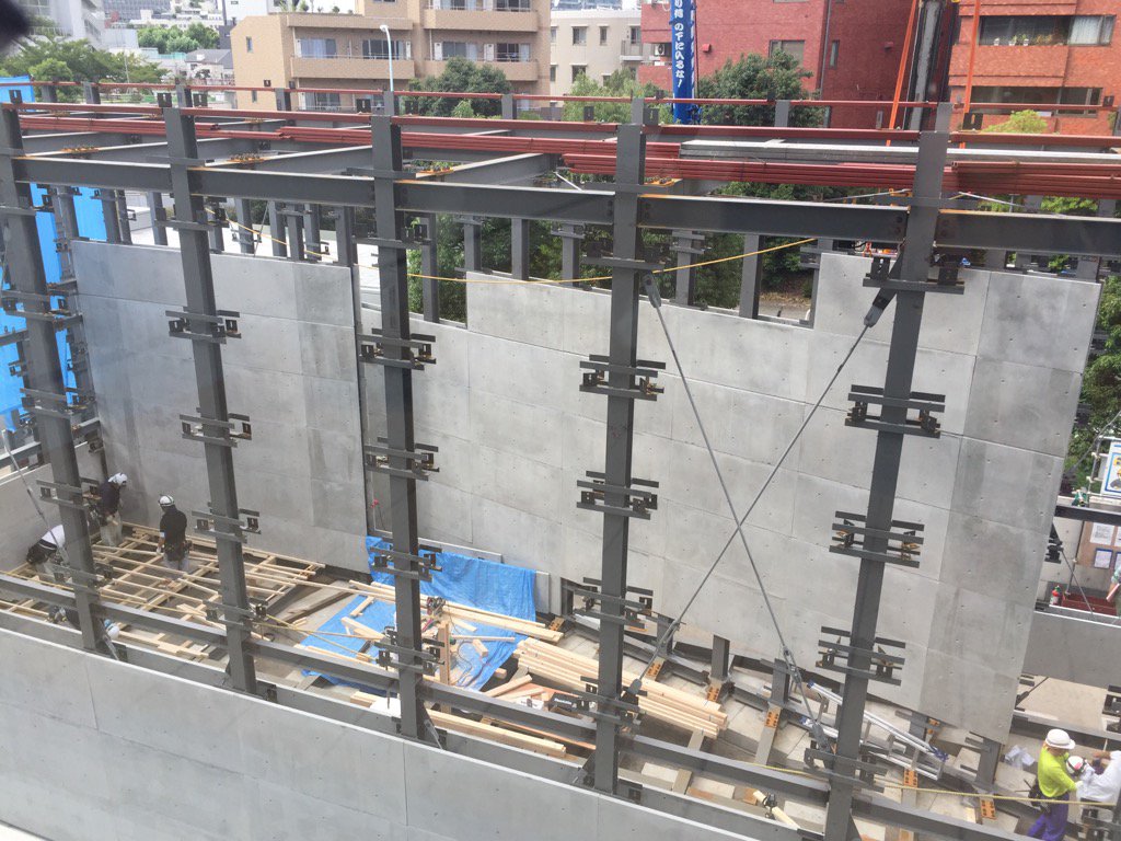 隠:わたしが思うには、このガタつきは、コンクリートパネルかブロックを工場でつくってきて、ここで鉄骨の骨組みに貼り付けたか、積み上げたかしたんだろうよ。それが下手くそなんだな。そうとしか思えなかった。だからどうもチャチっぽい違和感があってねえ。